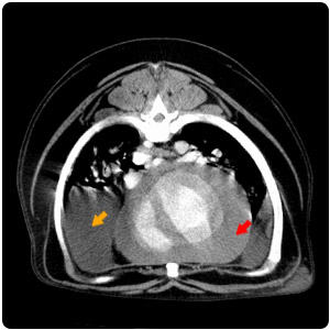 胸腔積液(黃)、心包囊積液(紅) |